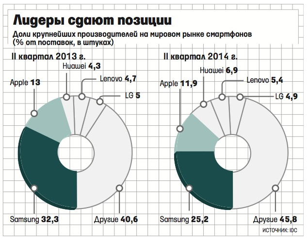 Продажи смартфонов Samsung и Apple ожидает стагнация Фото с сайта газеты "Ведомости"