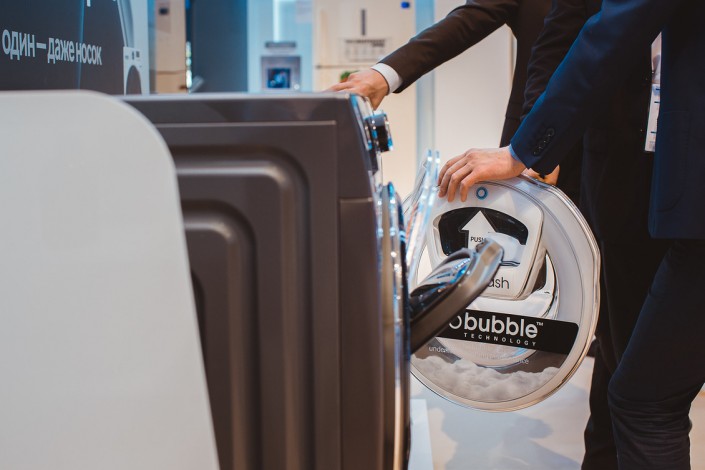 Революционные изменения произошли и в сфере бытовой техники. Участникам форума особенно понравилась стиральная машина Samsung AddWash с возможностью дозагрузки вещей - находка для забывчивых людей. Отныне, если в ходе процесса стирки вы обнаружили, что забыли закинуть второй носок или какой-нибудь другой предмет одежды или белье, вам не нужно ждать окончания работающей программы и запускать повторно машинку ради стирки лишь одной вещи. Достаточно лишь нажать на кнопку паузы, открыть специальную крышечку и закинуть нужную вещь в стирку.