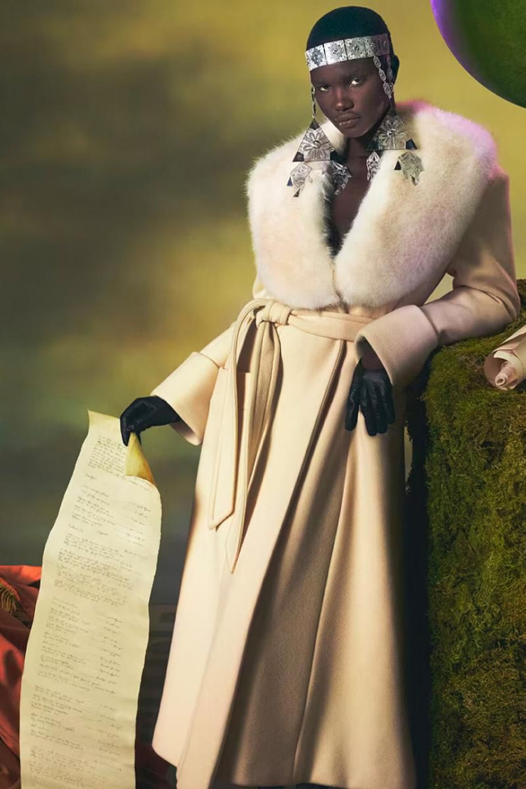 Что касается одежды, то здесь отчетливо виднеются отсылки к викторианской эпохе, силуэты 40-х годов и элементы новой классики - к примеру, сумка Aphrodite. Однако казахстанцы разглядели на моделях украшения, похожие на казахские шекелик. Кроме того, они позировали с музыкальными инструментами, похожими на домбру.