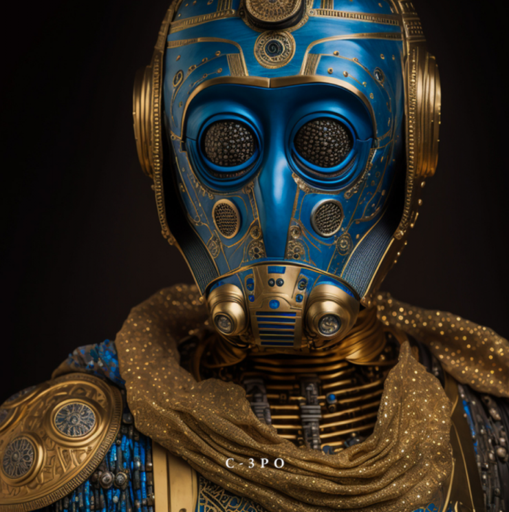 А робот C-3PO обзавелся синим корпусом и золотыми одеждами, почти как иссыкский "Золотой человек".