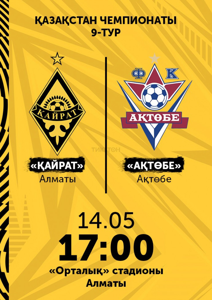На Центральном стадионе (улица Сатпаева, 29/3) в рамках 9-то тура чемпионата Казахстана состоится домашний матч сезона между футбольными клубами "Кайрат" и "Актобе".