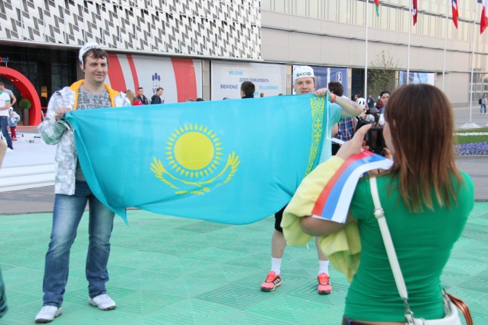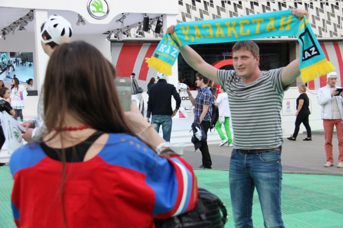 А вот как поддерживали национальную команду болельщики на трибунах арены "ВТБ Ледовая Арена". Фото корреспондента спортивного портала Vesti.kz.