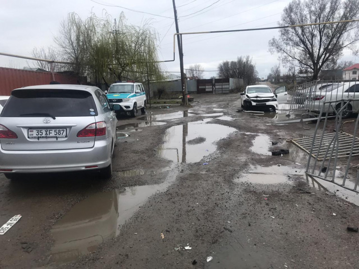 Далее, продолжив движение, водитель совершил лобовое столкновение с припаркованной полицейской автомашиной марки Kia, затем наехал на Lada priora и Toyota Camry, что также были припаркованы рядом. Водитель служебного авто - полицейский Мереке Отаргазы с переломами обеих ног был экстренно госпитализирован.