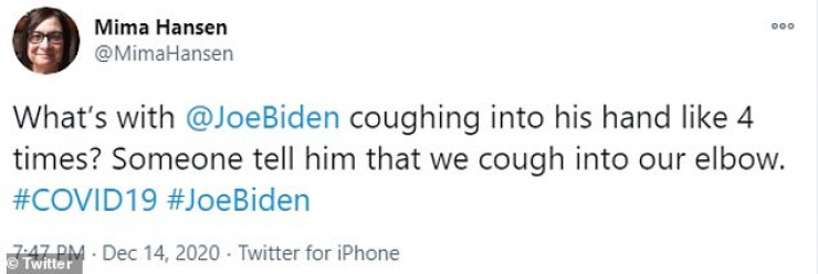 Один из пользователей напомнил, что кашлять нужно не в кулак, как Байден, а в сгиб локтя, особенно на фоне эпидемии коронавируса.