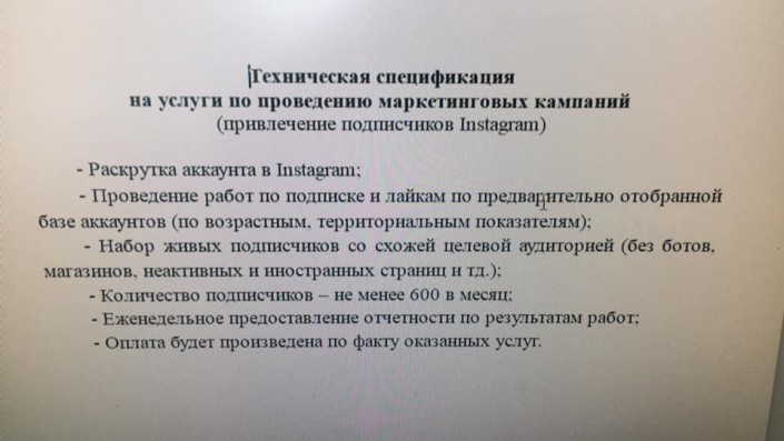 В социальных сетях появились скриншоты с сайта госзакупок, где одной из услуг, которые хотела приобрести национальная компания, были услуги по привлечению подписчиков в Instagram.
