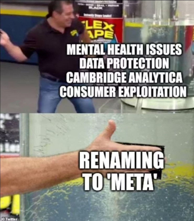 Mark Zuckerberg renaming Facebook to Meta in order to try and make people forget the insane levels of social damage Facebook has done. pic.twitter.com/kVKymZRSet