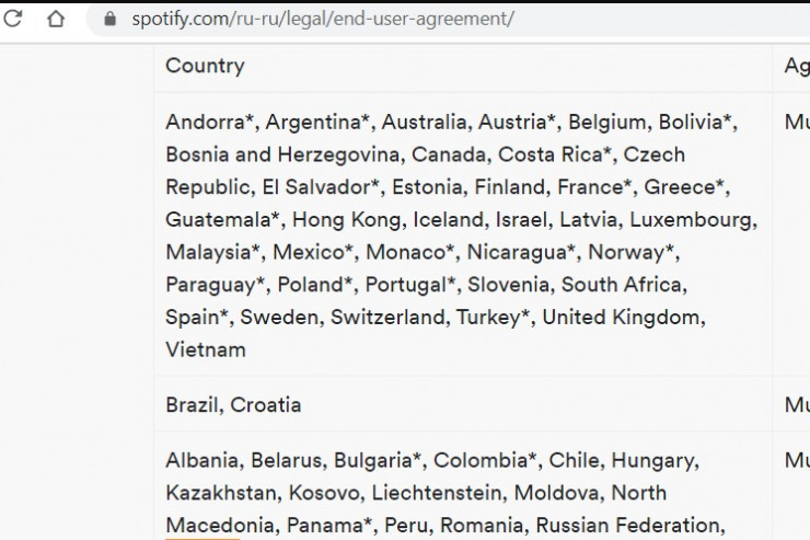 Шведский музыкальный сервис Spotify обновил пользовательское соглашение, в котором теперь упоминается Казахстан, передает Tengrinews.kz со ссылкой на "Код Дурова".