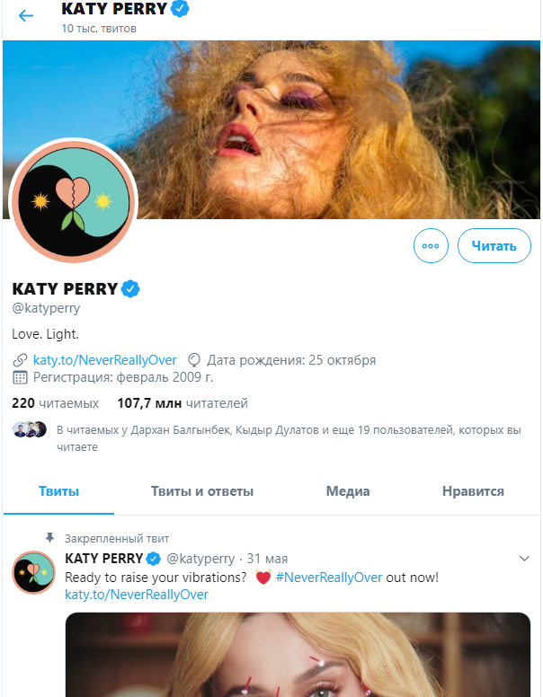 Twitter-ді саясаткерлер ғана емес, шоу-бизнес өкілдері де белсенді қолданады. Сервисте ең көп жазылушысы бар аккаунт та әншіге тиесілі. Танымал әнші Кэти Перриге қазір 107,7 миллион жазылған.