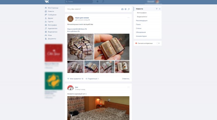 Стоит отметить, что в разделе "Новости" записи в ленте стали более отчетливыми. А раздел "Сообщения"