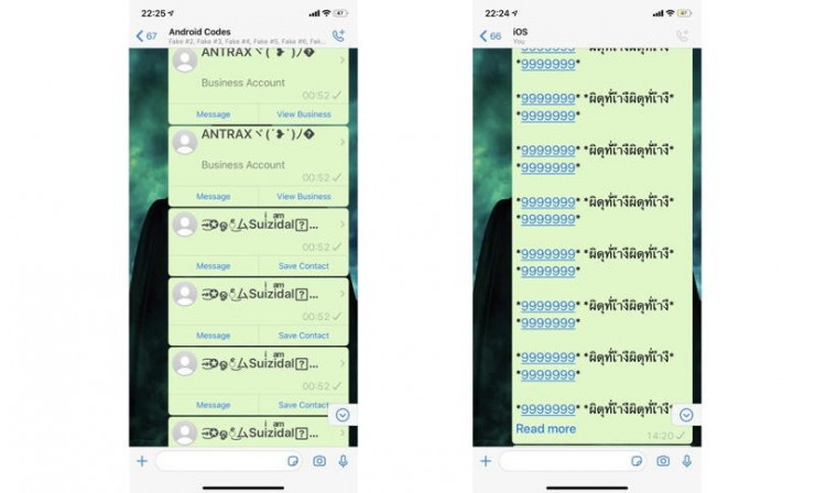 Как сообщается, с так называемой текстовой бомбой столкнулись как пользователи iOS-устройств, так и владельцы смартфонов на базе Android. Опасное сообщение выглядит как бессмысленный набор странных символов, при их получении WhatsApp вылетает из памяти и больше не может загрузиться, поскольку при повторном запуске снова видит те же самые символы.