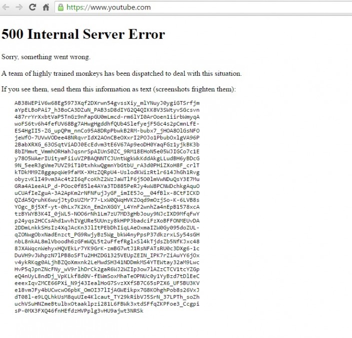 Об этом говорит код ошибки 500, который высвечивается при попытки зайти на стартовую страницу YouTube. Неполадки начались примерно в 17.25 по времени Астаны. В частности, сообщения о том, что YouTube перестал открываться, писали пользователи Twitter из разных частей света - России, Новой Зеландии, Великобритании, Ирана. Таким образом, можно сделать вывод, что проблема возникла на стороне видеохостинга.