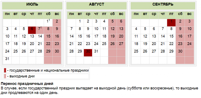 30 августа жителей страны ждет выходной, так как в этот день Казахстан празднует День Конституции, который в этом году выпадает на среду. 31 августа последует рабочий день.