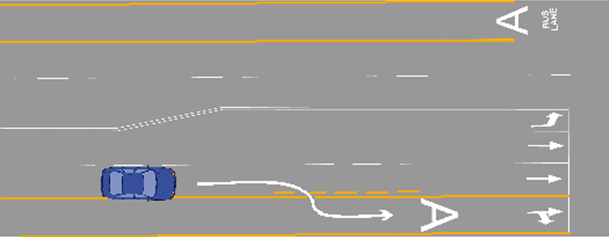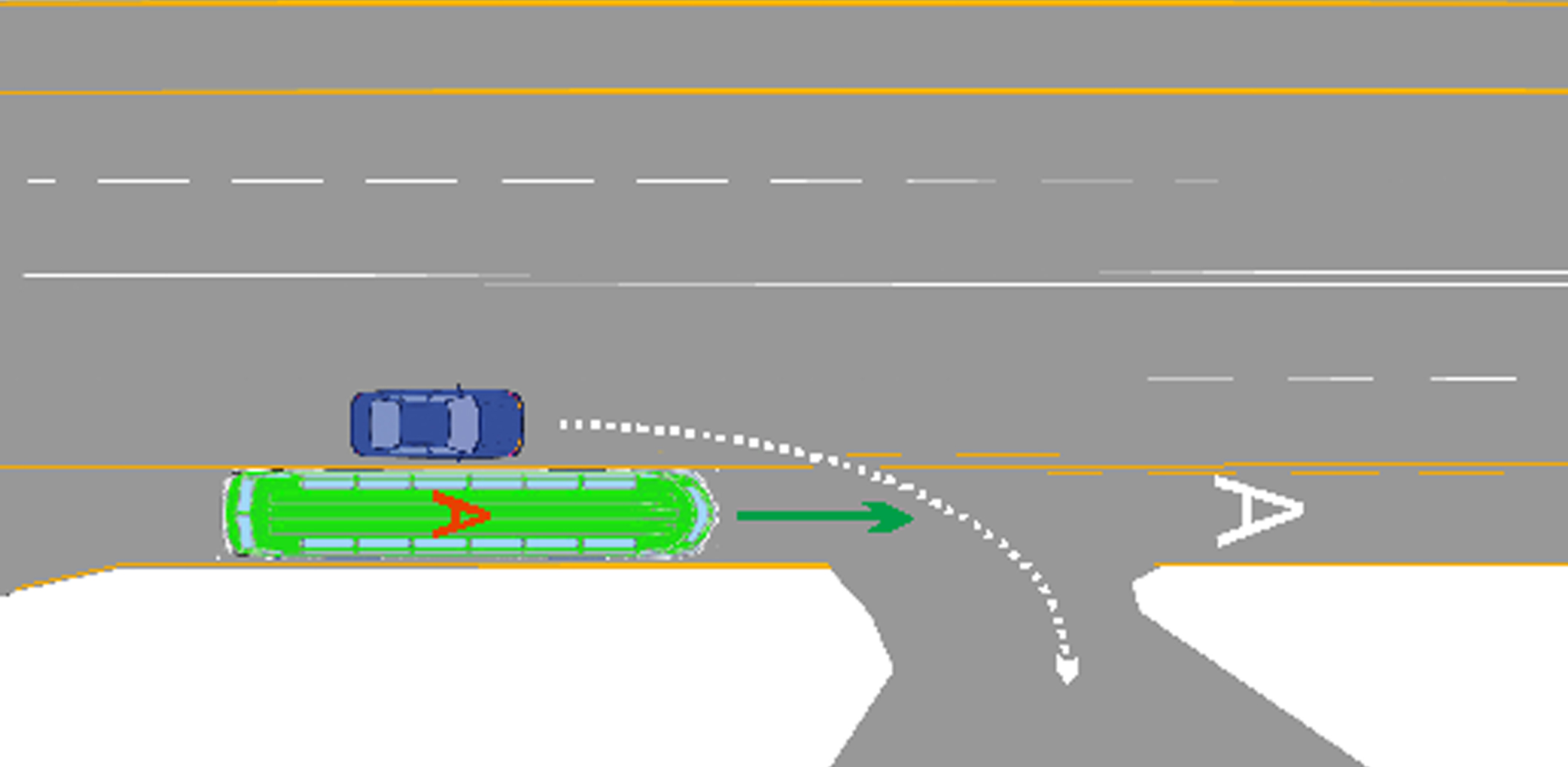 3. В данной ситуации водители других транспортных средств не должны выезжать на полосу общественного транспорта (BusLane).