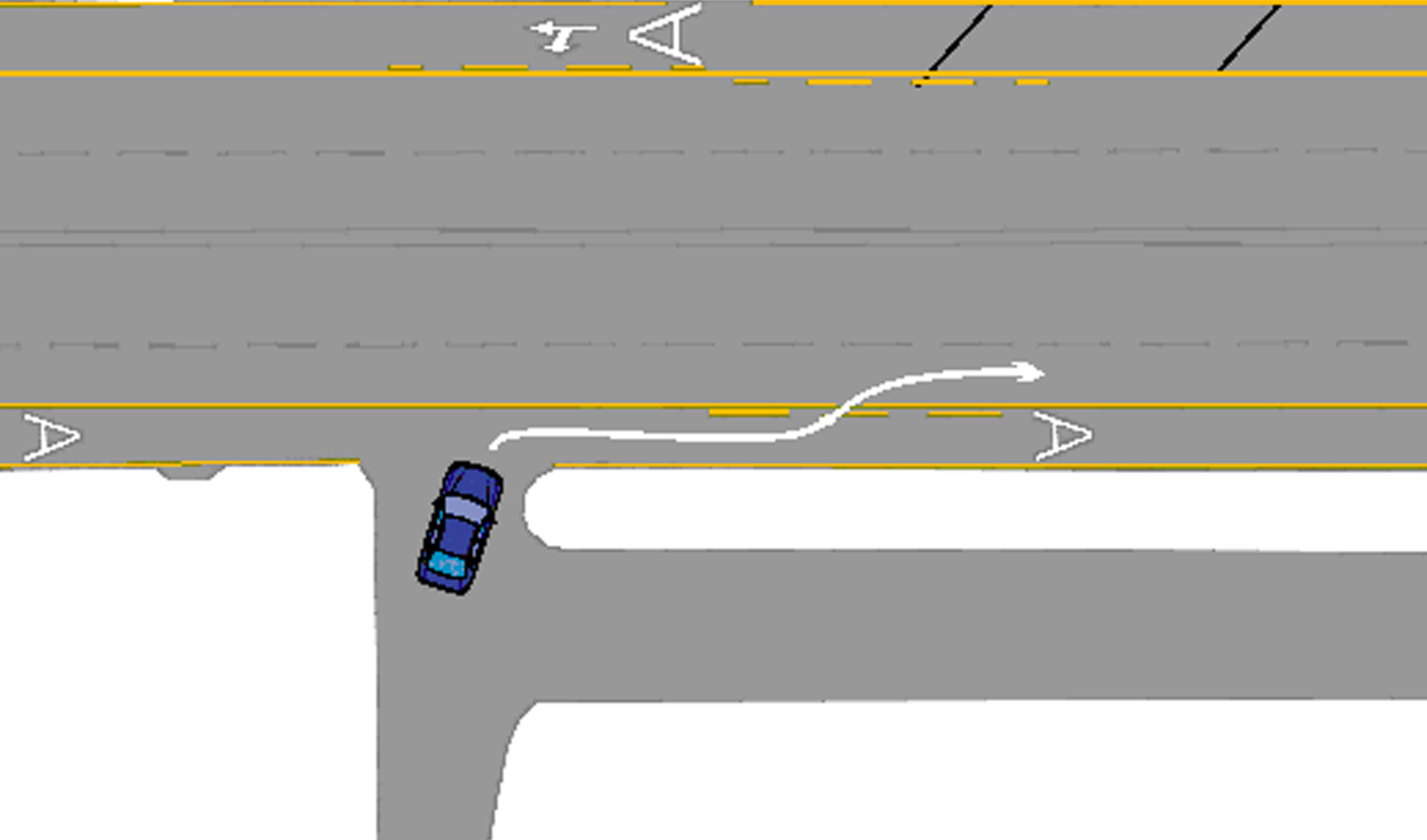 4. Выезжая с прилегающей территории, водители других транспортных средств, держась как можно правее, обязаны сначала повернуть на полосу для общественного транспорта (BusLane). Но затем необходимо незамедлительно ее покинуть (еще до того, как прерывистая разметка перейдет в сплошную).