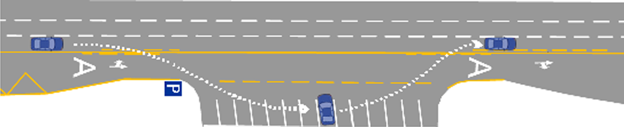 5. При въезде на существующие парковочные места, обозначенные дорожными знаками 5.15 "Место стоянки", водитель при наличии прерывистой линии обязан перестроиться на полосу, предназначенную для маршрутных транспортных средств, не создавая помехи попутно идущим автобусам. Соответственно, выезжая с места стоянки, необходимо незамедлительно ее покинуть (еще до того, как прерывистая разметка перейдет в сплошную).