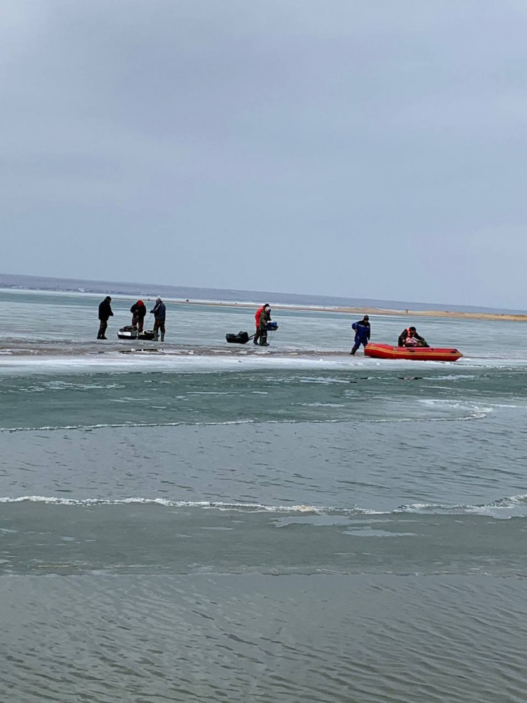 Прибывшие на место спасатели установили, что рыбаки находились на отколовшейся льдине в 30 метрах от берега.