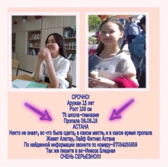 13-летняя школьница пропала в Астане
