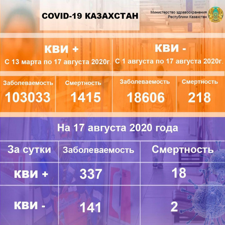 Сообщается, что число заболевших, выявленных в Казахстане с 1 августа, выросло до 18 606.