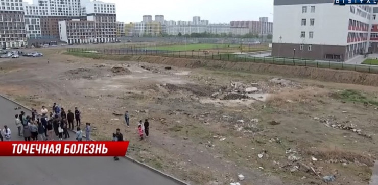 Три 18-этажные башни хотят втиснуть на 50-метровый участок между домом и школой в Астане Кадр из видео КТК.