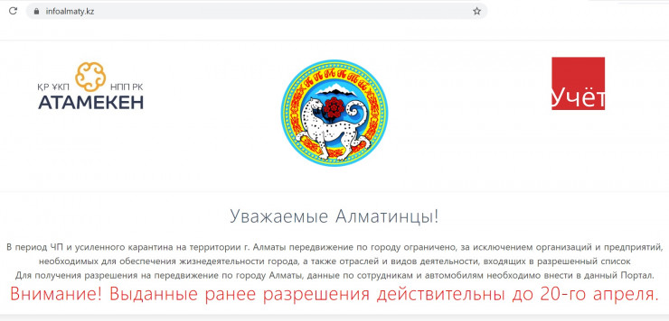 Согласно информации сайта Infoalmaty.kz, "выданные ранее разрешения действительны до 20 апреля". Возможно, сроки продлены из-за того, что не все заявки от предпринимателей рассмотрены и обработаны Оперативным штабом. По крайней мере, именно по этой причине ранее на один день продлевали разрешения на передвижение по городу.
