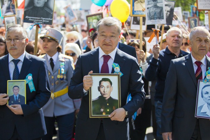 Патриотическая акция в ВКО в этом году набрала небывалый масштаб. Впервые "Бессмертный полк" появился на улицах Усть-Каменогорска в 2014 году. В прошлом году он насчитывал около десяти тысяч человек, а сегодня их число превысило 20 тысяч. Вместе с горожанами в шествии в память о погибших бойцах принял участие аким области Даниал Ахметов. Он прошел до мемориала Славы, держа в руках портрет своего отца - ветерана Великой Отечественной войны.