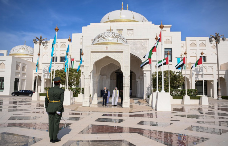 Официальная церемония встречи Президента Казахстана состоялась перед Дворцом президента ОАЭ "Аль-Ватан".