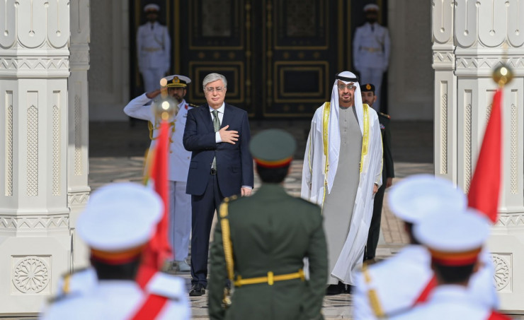 Касым-Жомарту Токаеву устроили торжественную встречу перед Дворцом президента ОАЭ, передает корреспондент Tengrinews.kz.
