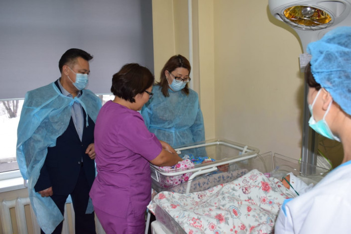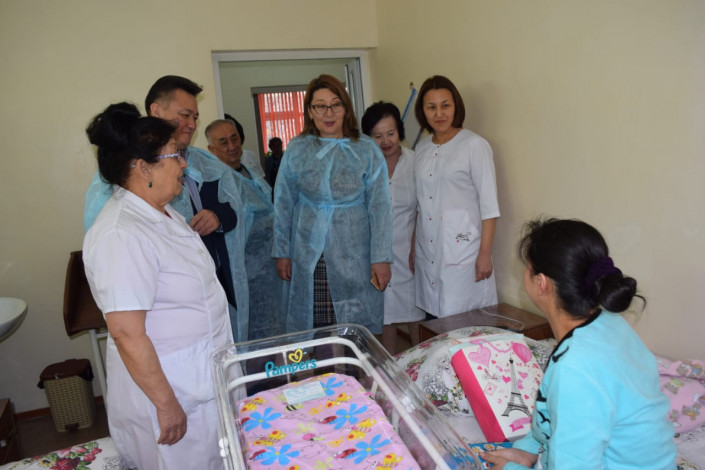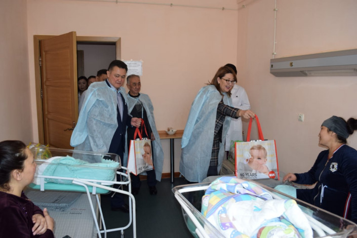 1 января вице-министр здравоохранения Лязат Актаева совместно с исполняющим обязанности руководителя Управления общественного здоровья Алматы Тлеуханом Абилдаевым посетили все родильные дома мегаполиса, где вручили счастливым мамам и новорожденным алматинцам подарки от имени министра здравоохранения РК.
