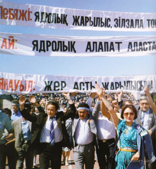В 1989 году во время очередных испытаний ядерных устройств в районе Семипалатинска произошел выброс радиоактивных облаков. После этих испытаний, 28 февраля 1989 года, родилось антиядерное движение "Невада-Семипалатинск". Главной своей целью оно считало закрытие Семипалатинского полигона и всех ядерных полигонов на Земле. В 1989 году массовые акции движения "Невада-Семей" остановили 11 взрывов из 18 запланированных на Семипалатинском полигоне, а в 1990 и 1991 годах не позволили произвести ни одного.