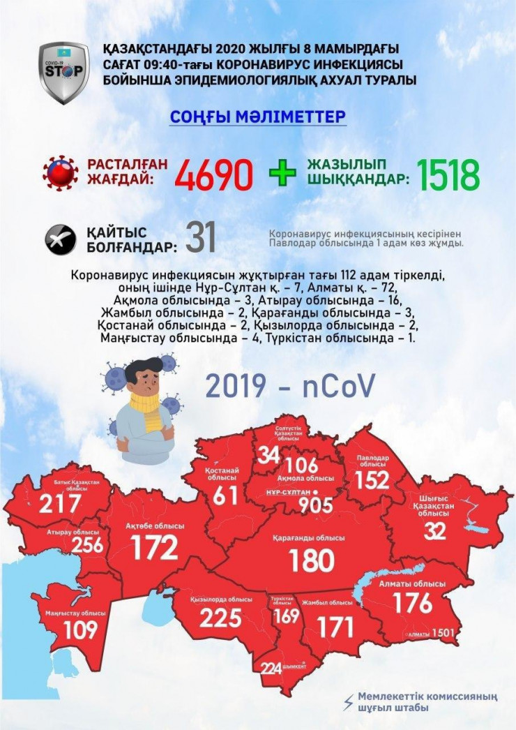 Напомним, о 31-м случае смерти от коронавируса в Казахстане рассказали утром 8 мая. В Павлодарской области это уже вторая смерть от болезни.