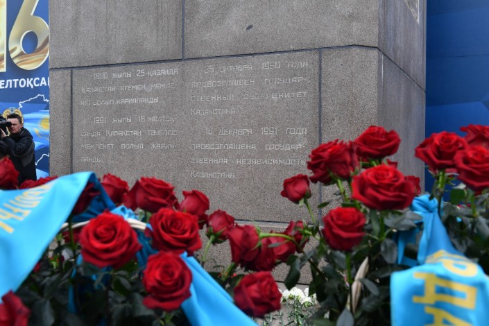 16 декабря 1996 года Президент Казахстана Нурсултан Назарбаев и президент Турции Сулейман Демирель разрезали ленточку и открыли монумент Независимости на площади Республики в Алматы.