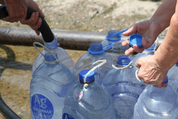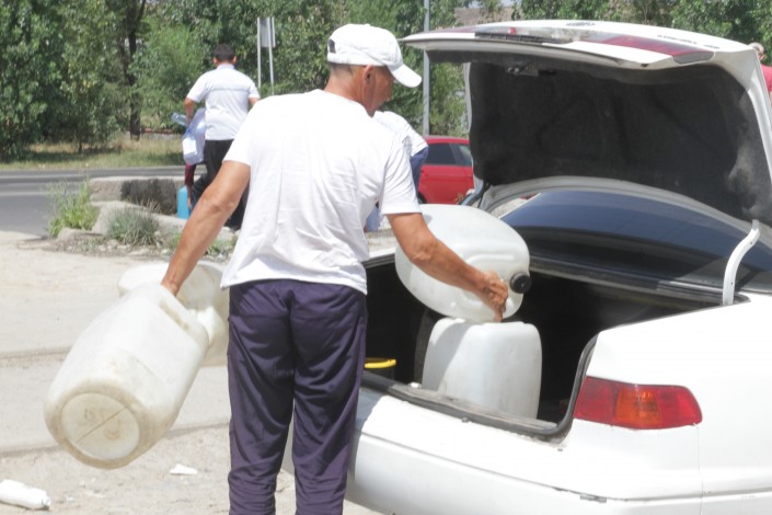 Тұрғындар көбінде флягамен, 5-6 литр құтылармен су алуға келеді.