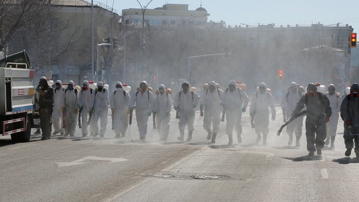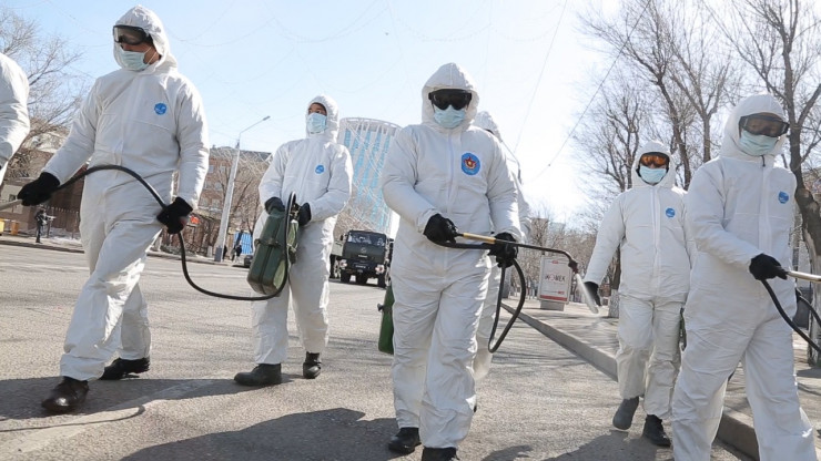 • Улицы города, тротуары, остановки и другие общественные места на ежедневной основе дезинфицируют специальным раствором. В проведении мероприятий, помимо городских служб, задействованы военнослужащие подразделения биологической защиты Вооруженных сил. Всего 450 человек.