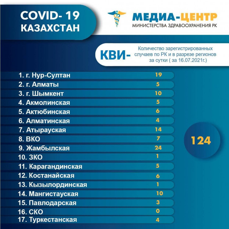 По количеству зарегистрированных случаев КВИ- по Казахстану и в разрезе регионов за сутки 16 июля лидером стала Жамбылская область.