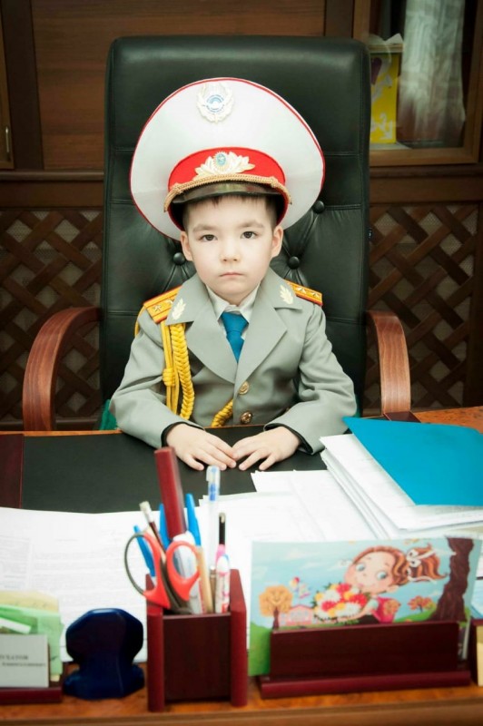 Два года назад она на заказ сшила сыну полицейскую форму для участия в областном детском конкурсе "Бүлдіршін", где малыш дважды занимал первое место. "Сын участвовал в конкурсе чтецов и попросил форму майора, это он так мне подражал. В пять лет на этом же фестивале читал стихотворение, что хочет быть генералом, пришлось шить генеральскую форму. Сейчас уже из нее вырос, все спрашивает, когда купим новую, мечтает стать генералом. Это его мечта, мы только стараемся ее развивать. Нет никакой муштры, как пишут некоторые в комментариях. Его интересуют военная тематика, история, полководцы, главнокомандующие. Например, кто такие Сталин, Жуков. Хочет побывать на танкостроительном заводе", - улыбаясь, говорит мама мальчика.