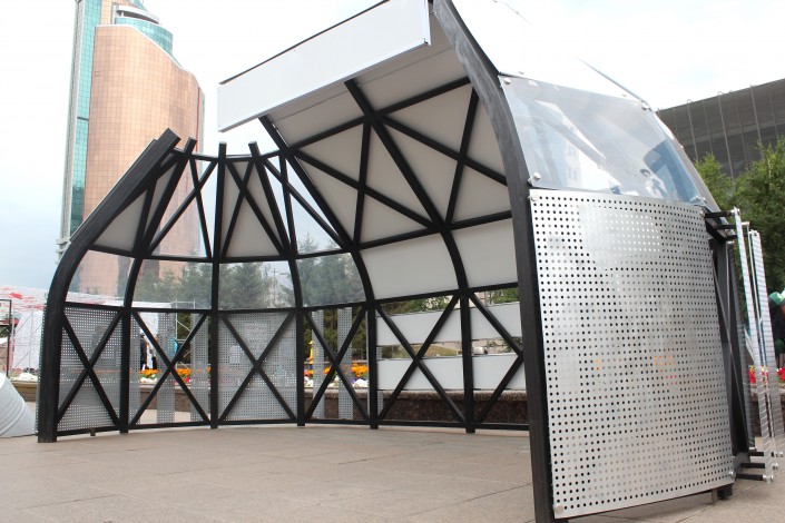 На фестивале представлено много интересных архитектурных проектов, к примеру, японский архитектор Шин Шокита создал концепцию автобусной остановки под названием "Раковина юрты". Автор постарался расформировать классическую юрту на детали и собрать из нее модель крытой остановки.