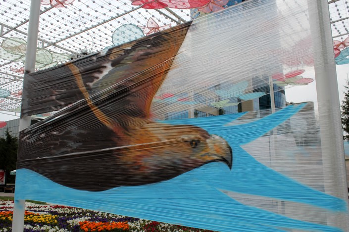 Астана - город, построенный посреди степи, жаркое солнце летом порой становится главной причиной, почему горожане не хотят покидать прохладные помещения. Участники ArtFest'а разбили по территории фестиваля несколько белых сеток, создающих легкую тень. Эти сетки также являются экспонатами выставки, но одновременно они спасают посетителей от зноя.