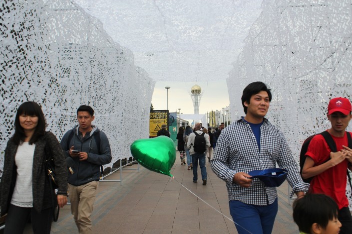 Авторы работ часто находятся здесь на фестивале, они с радостью объясняют суть своих произведений, философствуют на различные темы, задают интересные вопросы о жизни казахстанцев.
