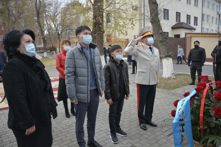 Вдова Газиза Байтасова Гульжамал Тажиева в ответном слове поблагодарила руководство и личный состав ДП Жамбылской области за память и внимание к их семье.