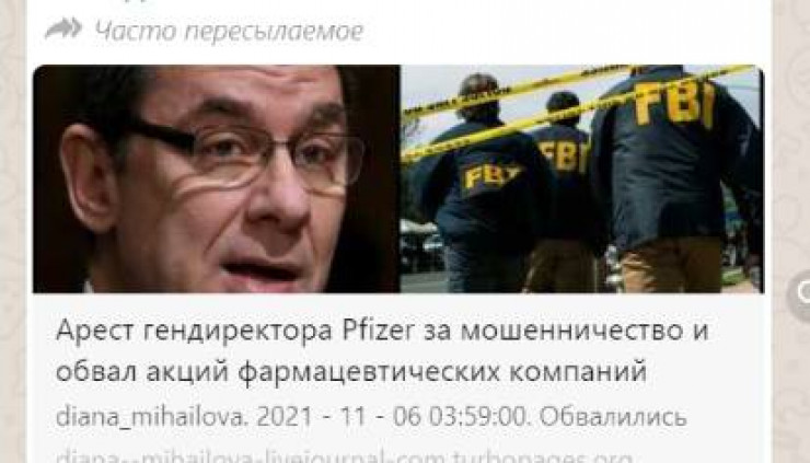 WhatsApp мессенджерінде қазақстандықтар Pfizer компаниясының бас директоры Альберт Бурла тұтқындалғаны туралы ақпарат тарады. Оған алаяқтық жасады және фармкомпаниялардың акцияларын қасақана арзандатқан деген айып тағылғаны айтылады.