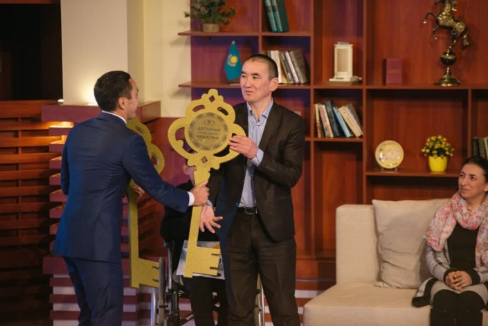 Глава компании BI Group Айдын Рахимбаев вручил ключи от квартир победителям конкурса "Достойный гражданин Казахстана", передает корреспондент Tengrinews.kz.