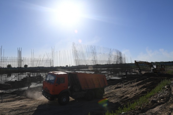 Ранее сроки строительства были продлены в связи с необходимостью производства работ по инженерной защите участка от подтопления. На сегодня уже завершена забивка 3 тысяч свай и бетонирование фундамента. Начаты работы по устройству армированного каркаса стен основного блока.