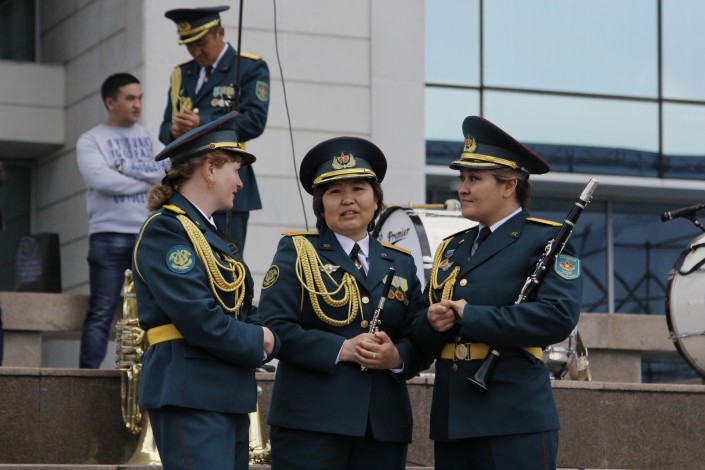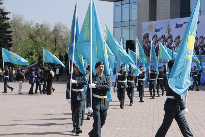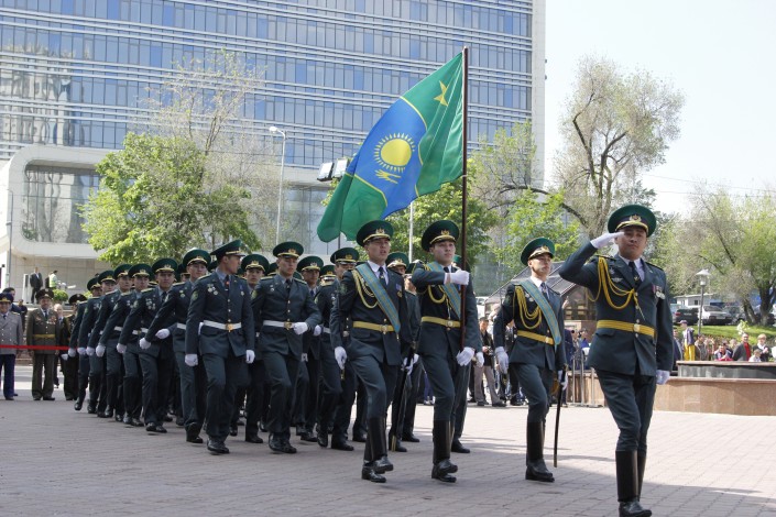 После на площади Абая прошли показательное выступление с оружием курсантов службы Государственной охраны и маршировка других военнослужащих. Всего в мероприятии приняли участия более 500 военнослужащих. Праздник завершился выступлением артистов. Организатором мероприятия выступил Департамент по делам обороны Алматы.