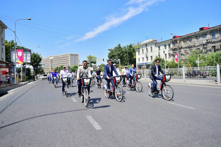 Аким Шымкента рассказал, что теперь каждый день на работу и обратно добирается на велосипеде. На презентацию он пришел в деловом костюме. "Сегодня я просто выступал на открытии велостанций, поэтому в костюме. А обычно я, когда еду на велосипеде, его снимаю. Еду только в рубашке и в галстуке. Женщинам стоит обувать кроссовки, ведь есть же в офисе возможность потом переобуть каблуки. Я вообще всем советую на велосипеды пересесть. Чем в автобусах ездить тем же студентам, лучше с ветерком на велобайке, можно еще и бесплатно доехать до вуза и домой. Если успеешь за 20 минут до следующей станции доехать, вообще за проезд платить не придется. Да и многие наши водители должны пересесть на велосипеды. Это и экономия,  и для здоровья полезно", - поделился аким впечатлениями после поездки на велосипеде.