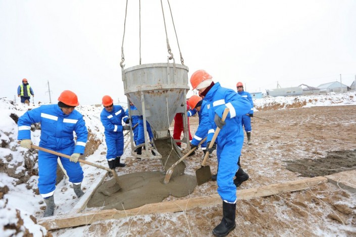 Аким ЗКО Алтай Кульгинов поучаствовал в заливке фундаментов двух школ Фото предоставлено акиматом ЗКО