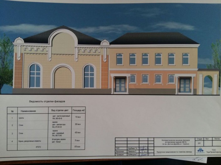 Между тем, большинство зданий, о которых идет речь, являются архитектурными и историческими памятниками 18 и 19 веков, и реставрация каждого из них стоит десятки миллионов тенге. Поэтому аким города Нариман Турегалиев предложил на ближайшее время освежить центральные улицы за счет косметического ремонта фасадов. Отдел архитектуры города разработал колористическое решение, основываясь на исторических данных об Уральске и прямо во время совещания руководителям госслужб раздали эскизы того, как должны будут выглядеть их здания после ремонта.
