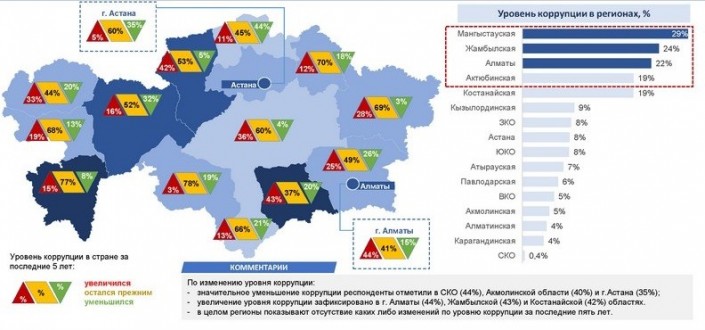 Стоит отметить, что по итогам социального исследования Мангистауская область заняла в рейтинге первую строчку по уровню коррупции. Глава региона считает, что этот рейтинг необходимо пересмотреть, так как он не объективен. Айдарбаев отметил, что разница в показателях между регионами составила 50-70 процентов. В одной стране, по мнению акима, такого быть не может.