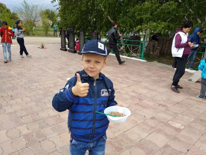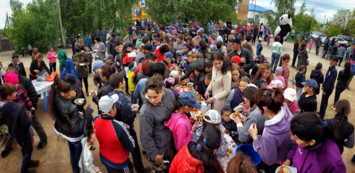 Для всех остальных юных жителей местный акимат накануне детского праздника устроил массовое угощение на свежем воздухе. Малышей накормили ароматной гречневой кашей, угостили различными сладостями и напитками.