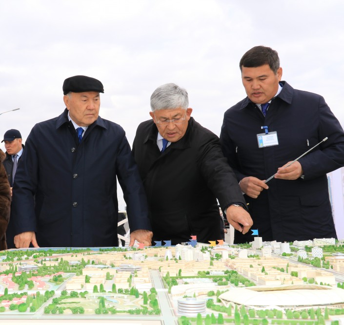 Ознакомление с ходом строительства объектов на левобережной части Сырдарьи. © akorda.kz